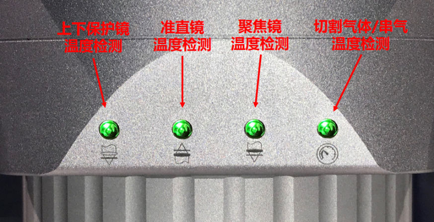 在切割頭的核心關鍵部位,嵌入了相應的精密傳感器,實時監控切割頭核心區域工作狀態,并通過切割頭上的的四個三色(紅綠黃)LED燈以3種閃爍狀態(常亮、閃爍、快速閃爍)實時顯示。可有效規避因其他異常導致對切割頭元器件近一步損傷,使異常可視化,讓干預提前介入,從而降低損失。同時,通過收集監控數據,可為產品進一步優化提供參考。