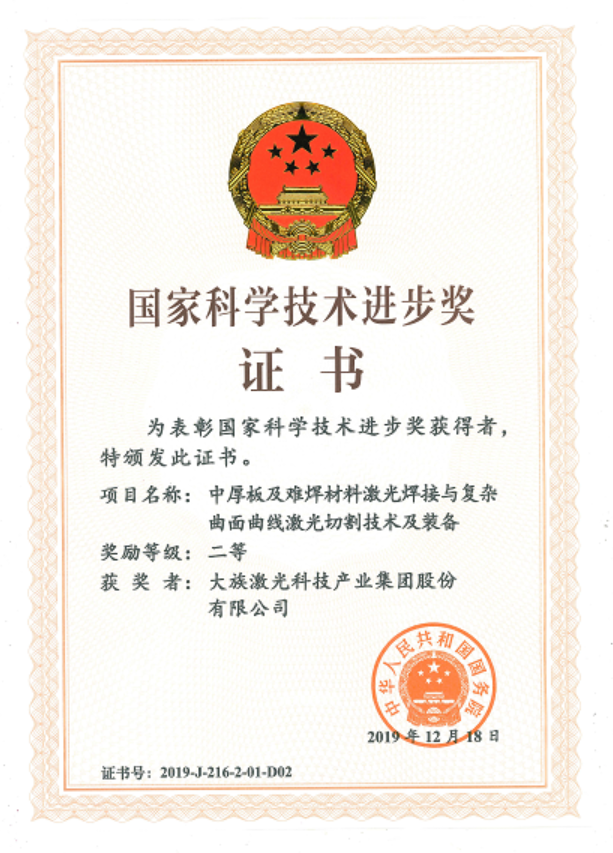 400-666-4000 2019年,大族激光智能裝備集團“中厚板及難焊材料激光焊接與復雜曲面曲線激光切割技術及裝備”項目榮獲科技界最高獎“國家科學技術進步獎”;代表國際領先水平的三維五軸激光加工裝備獲得“中國好設計獎”。