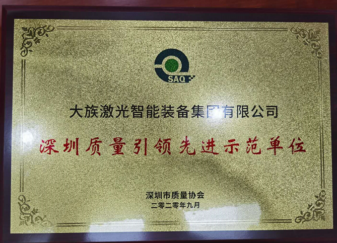 峰會期間,大族激光智能裝備集團被授予“深圳質量引領先進示范單位”、“2019年度深圳質量突出貢獻獎”,以表彰其在深圳先行示范區的高質量發展進程中發揮的優秀企業示范作用與顯著貢獻。