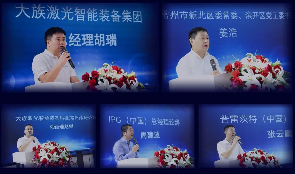 常州國家高新區(qū)黨工委(新北區(qū)委)副書記石旭涌、常州市新北區(qū)委常委姜浩、大族激光智能裝備集團(tuán)總經(jīng)理胡瑞、大族激光智能裝備科技(常州)有限公司董事長鄧升龍、大族激光智能裝備科技(常州)有限公司總經(jīng)理趙劍、IPG中國區(qū)總經(jīng)理周建波、普雷茨特中國區(qū)總經(jīng)理張云鵬,大旌激光智能裝備集團(tuán)相關(guān)領(lǐng)導(dǎo),以及社會各界來賓出席發(fā)布會。
