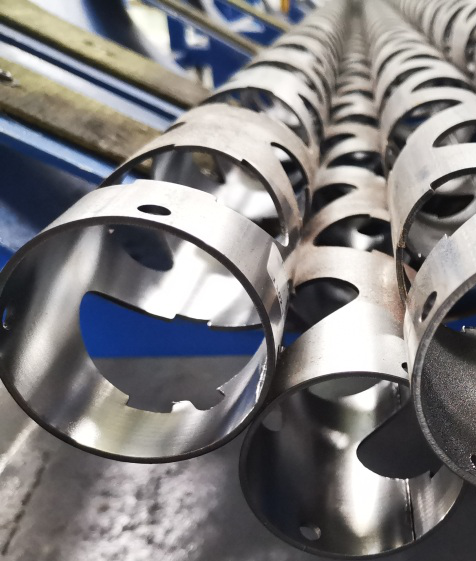 激光切管柔性生產(chǎn)線切割彈架實(shí)現(xiàn)切割輪廓緊密貼合、無(wú)失真,所見(jiàn)即所得;切割孔徑向、軸向尺寸無(wú)差異,加工孔直徑偏差實(shí)現(xiàn)嚴(yán)格限制,避免彈頭晃動(dòng);相位角自動(dòng)調(diào)整補(bǔ)償,實(shí)現(xiàn)射孔彈穿孔無(wú)偏差;復(fù)雜輪廓不抬頭切割,實(shí)現(xiàn)高速切割、高效率掉片等重大技術(shù)突破。