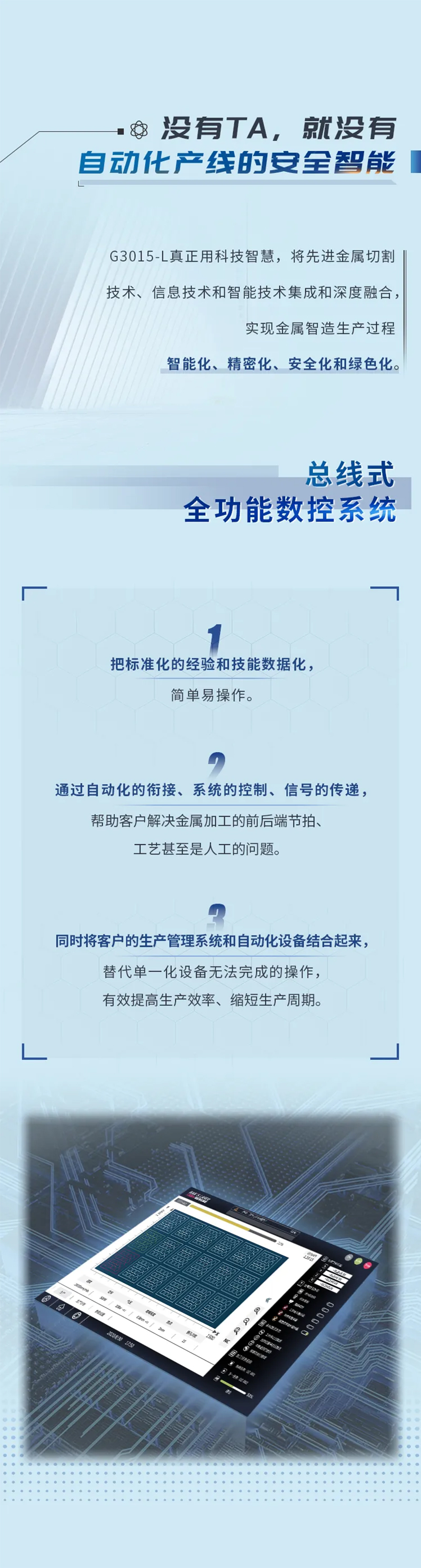 全新結(jié)構(gòu)的ALU系列自動化切割生產(chǎn)線,協(xié)調(diào)性更高、效率更高,模塊化設計,可根據(jù)需求自由組合,預留擴展接口,可根據(jù)后續(xù)實際產(chǎn)能情況增加機器,實現(xiàn)1拖N,并可預留信息化接口,對接MES,為后續(xù)并入智能化數(shù)字車間做好基礎。